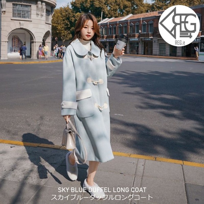Regit スカイブルー ロング丈 ダッフルコート 韓国ファッション ロングコート 10代 代 かわいい コート ラウンド襟 プチプラ 水色 アウター 着回し 通販 Lineポイント最大0 5 Get Lineショッピング